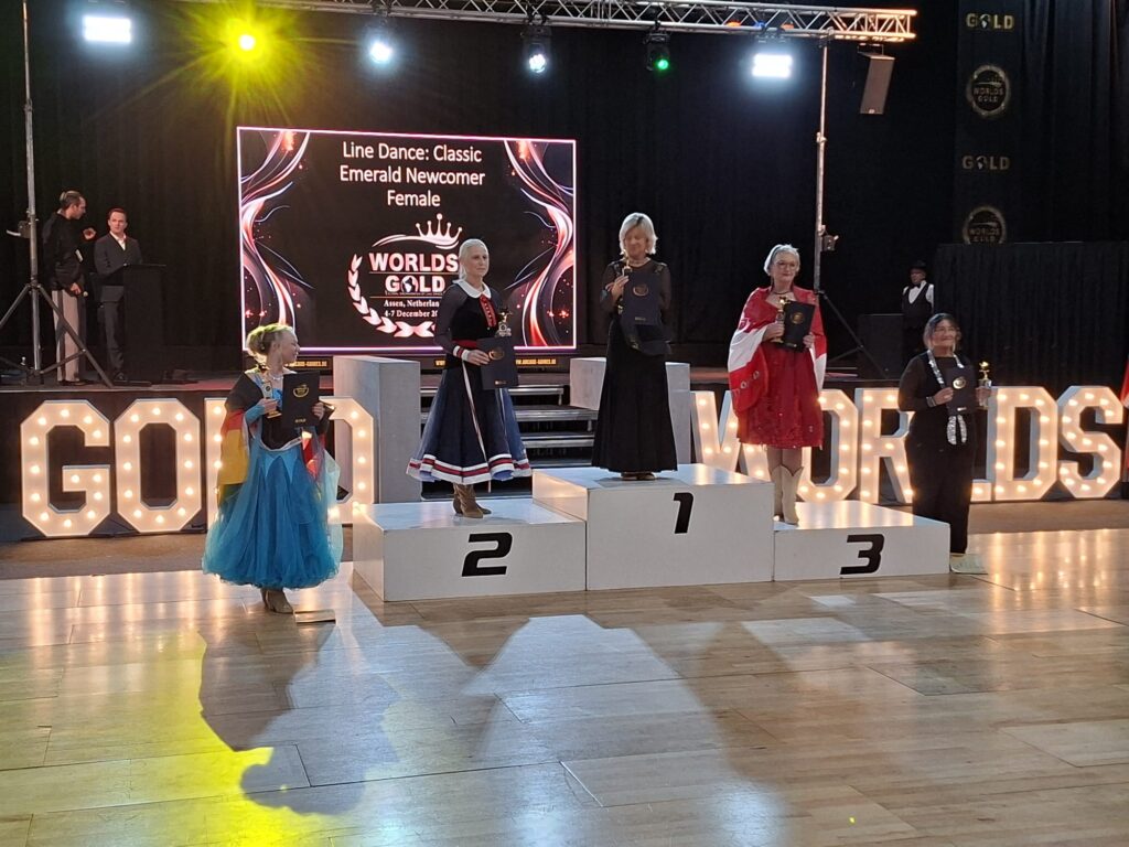 Nach dem Gewinn des Deutschen Meisterschaftstitel im BFCW Ende September 2025 im Line Dance in der Kategorie Novice Gold, fanden vom 03.12.2025 bis zum 07.12.2025 in Assen (Holland) die Weltmeisterschaften im Line Dance von der GOLD Organisation statt. Es waren über 430 Tänzer aus 19 Nationen am Start, unsere Gabriele erreichte am Donnerstag im Newcomer Classic Emerald den Vizeweltmeistertitel mit den Tänzen Smooth, Walzer und Lilt (12 Startern) und konnte sich sehr darüber freuen.